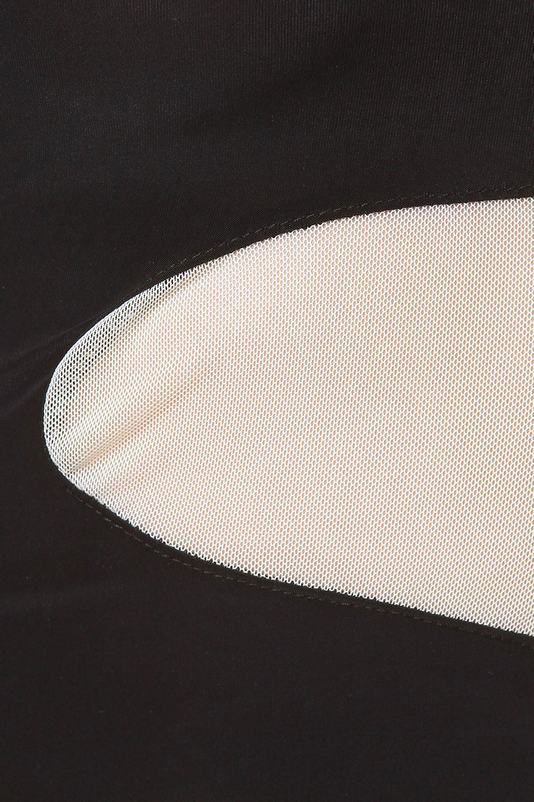 This party dress features solid stretch fabric, contrast semi-sheer mesh, curvy panel design, round neckline, single long sleeve, and maxi length. Accessories sold separately. 92% Polyester, 8% Spandex.